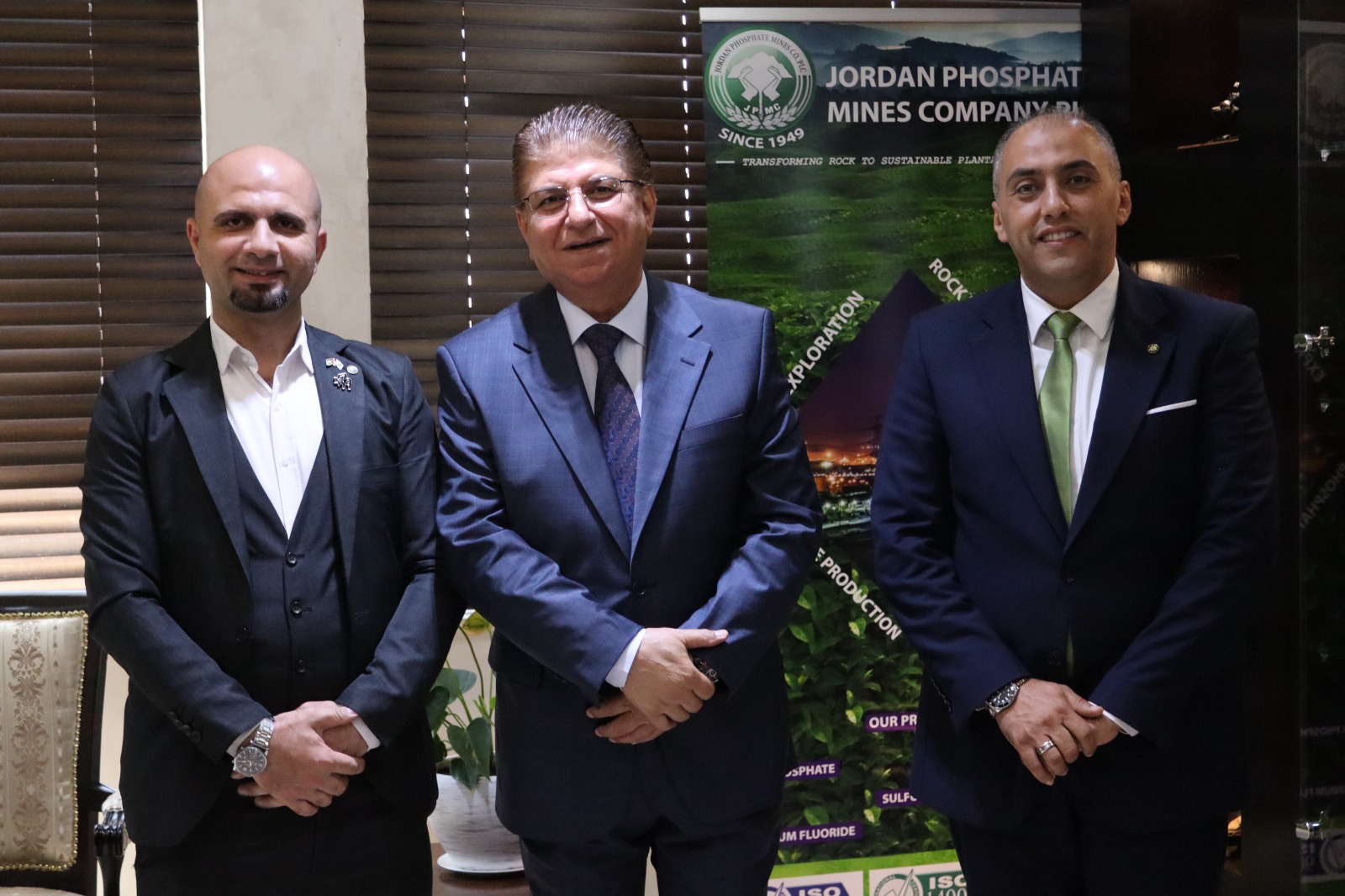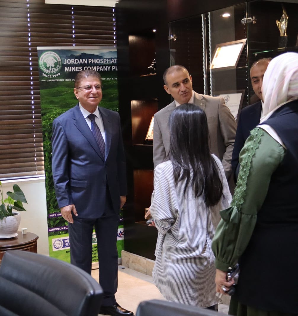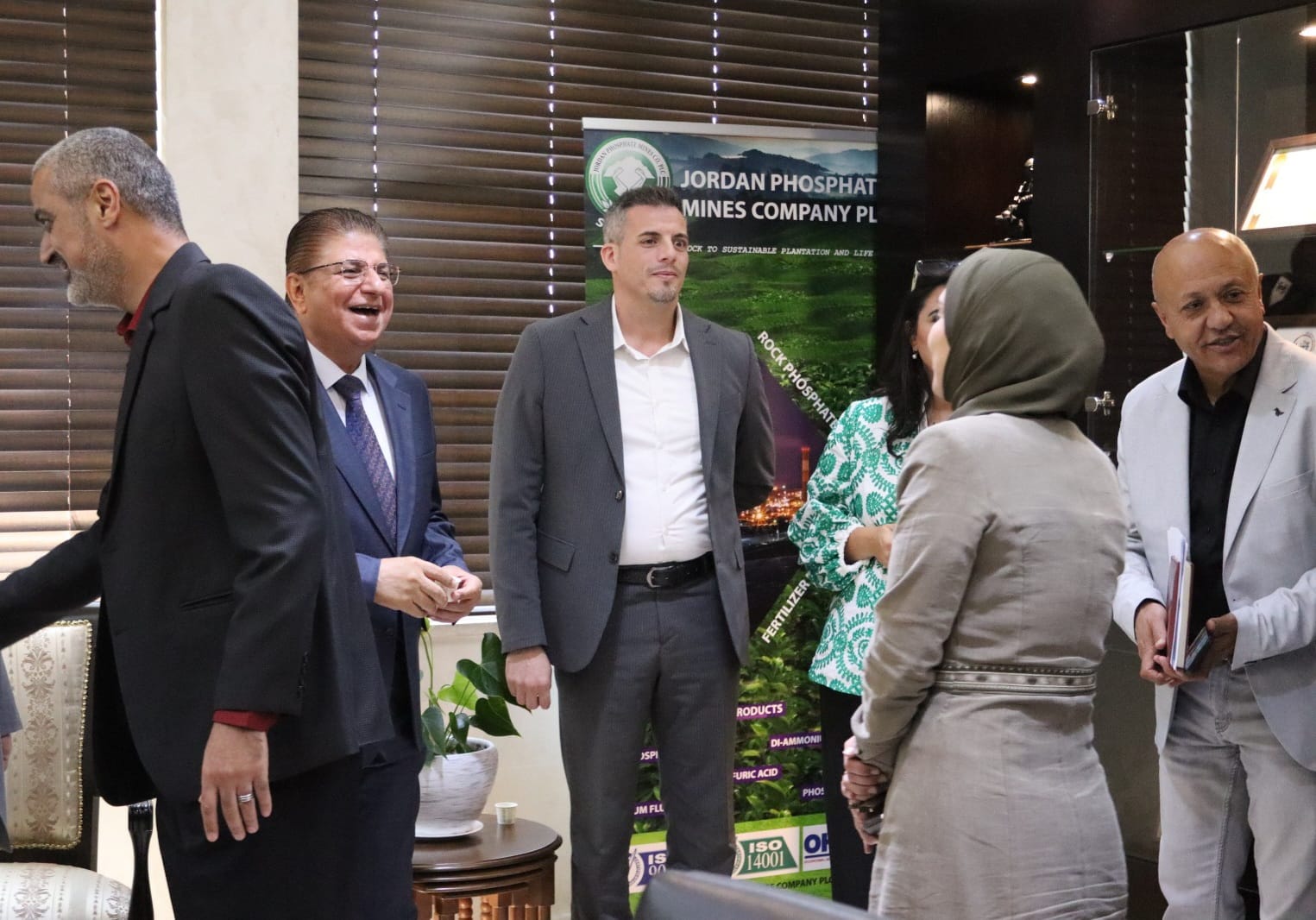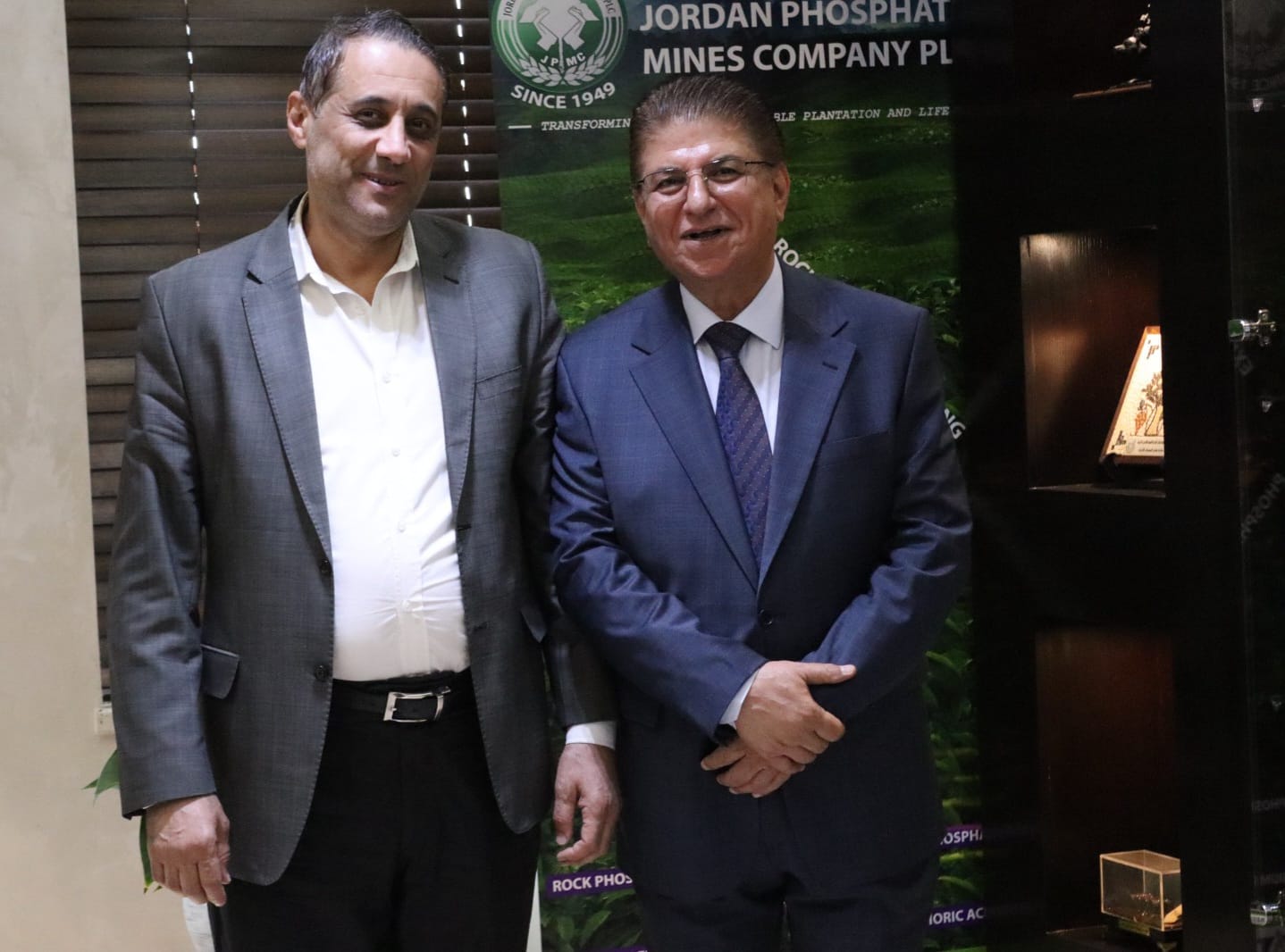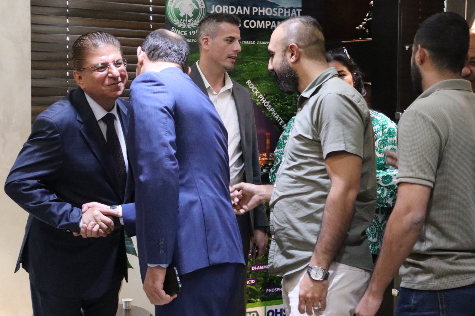 The CEO of the Jordan Phosphate Mines Company, Engineer Abdul Wahab Al-Ruwad, receives congratulations from the company's family on his election as Chairman of the Board of Directors of the Arab Fertilizer Association for the next term.