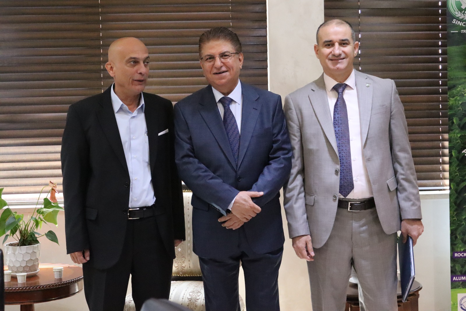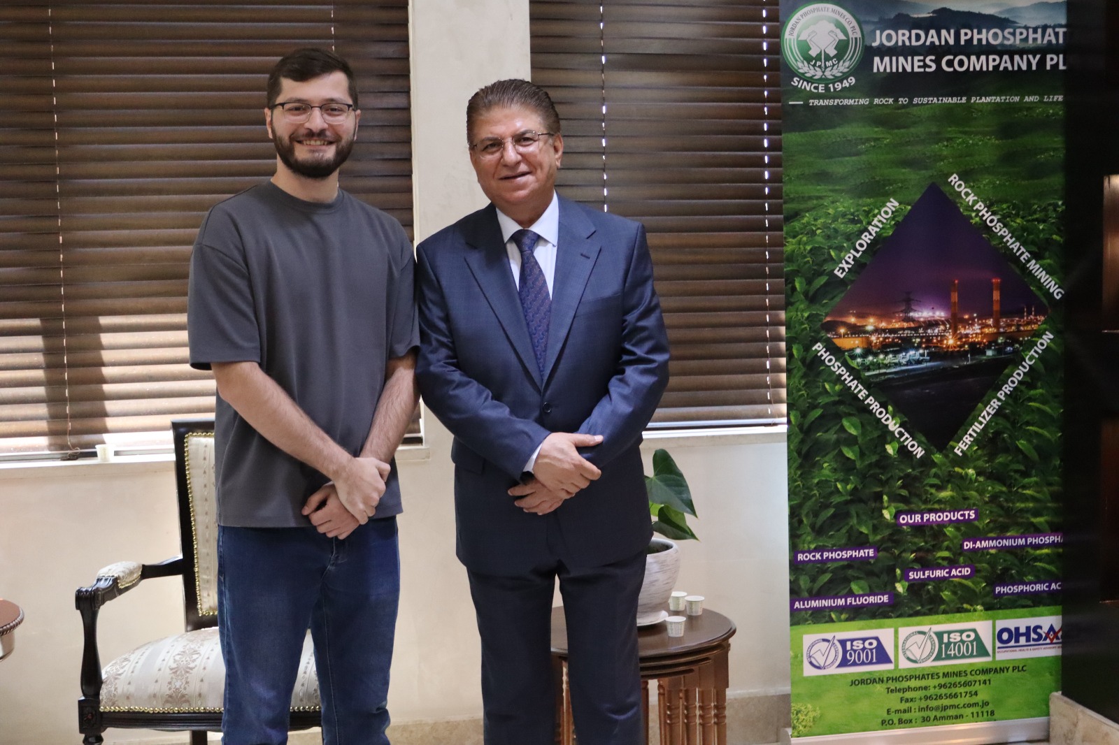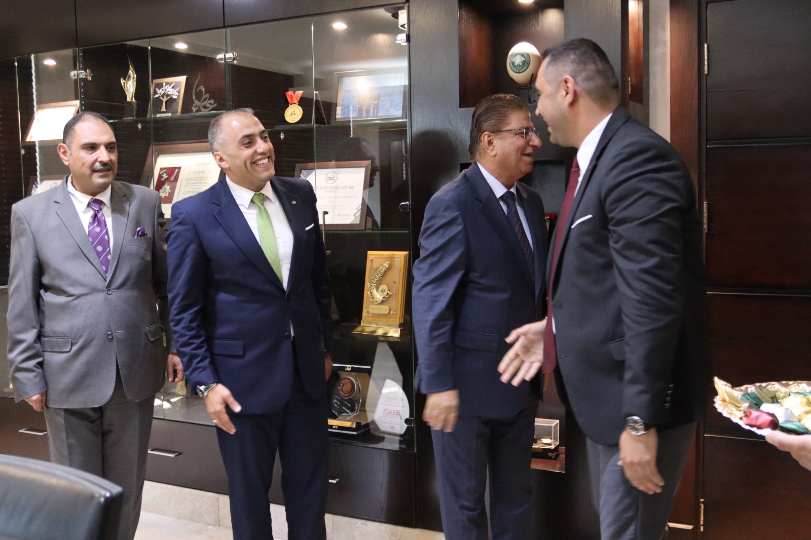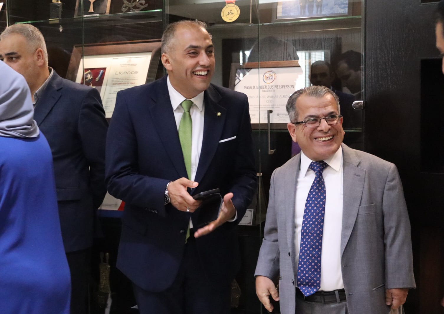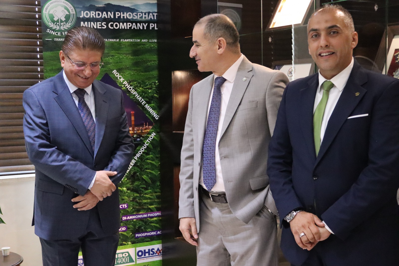 The CEO of the Jordan Phosphate Mines Company, Engineer Abdul Wahab Al-Ruwad, receives congratulations from the company's family on his election as Chairman of the Board of Directors of the Arab Fertilizer Association for the next term.
