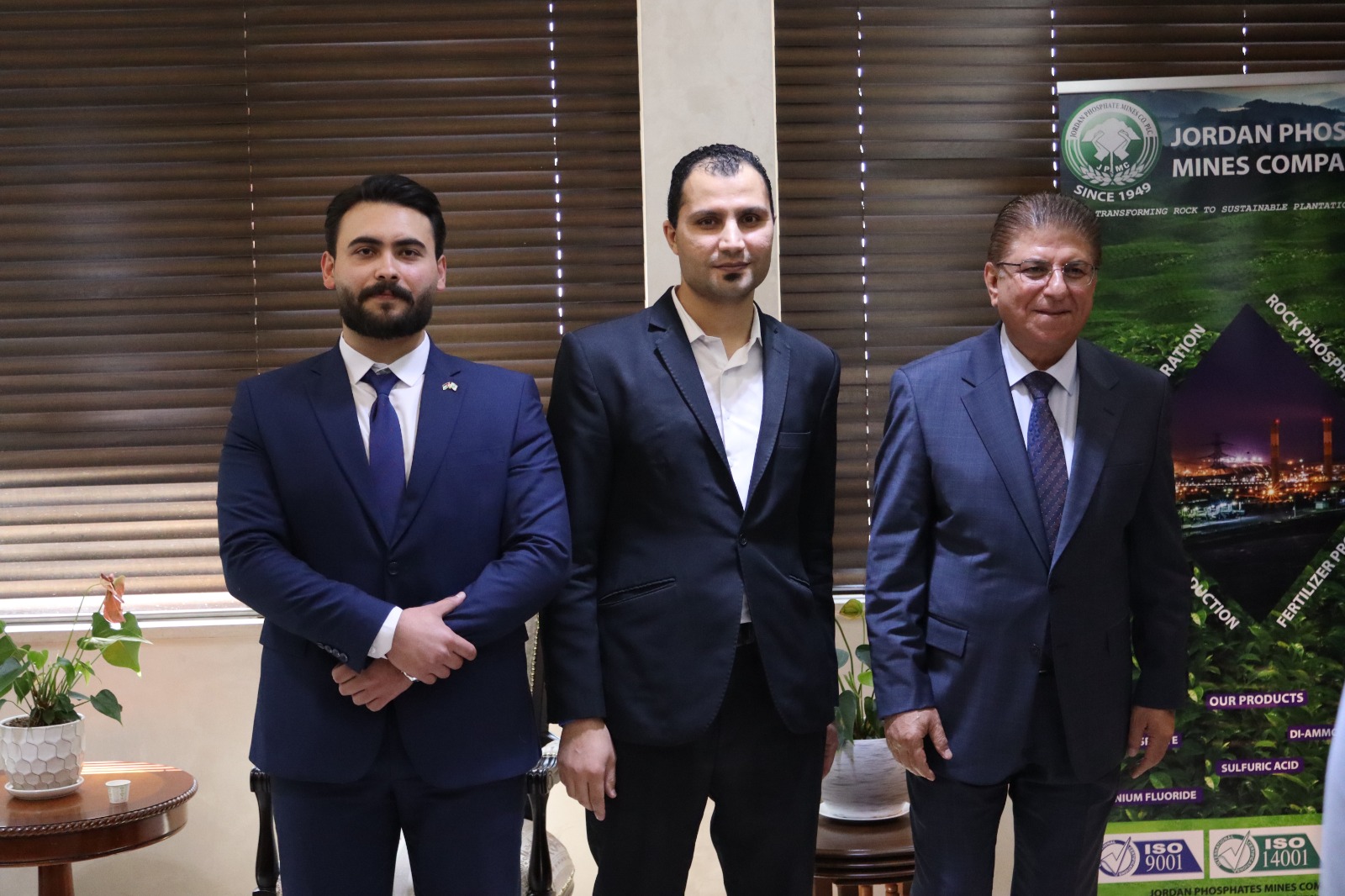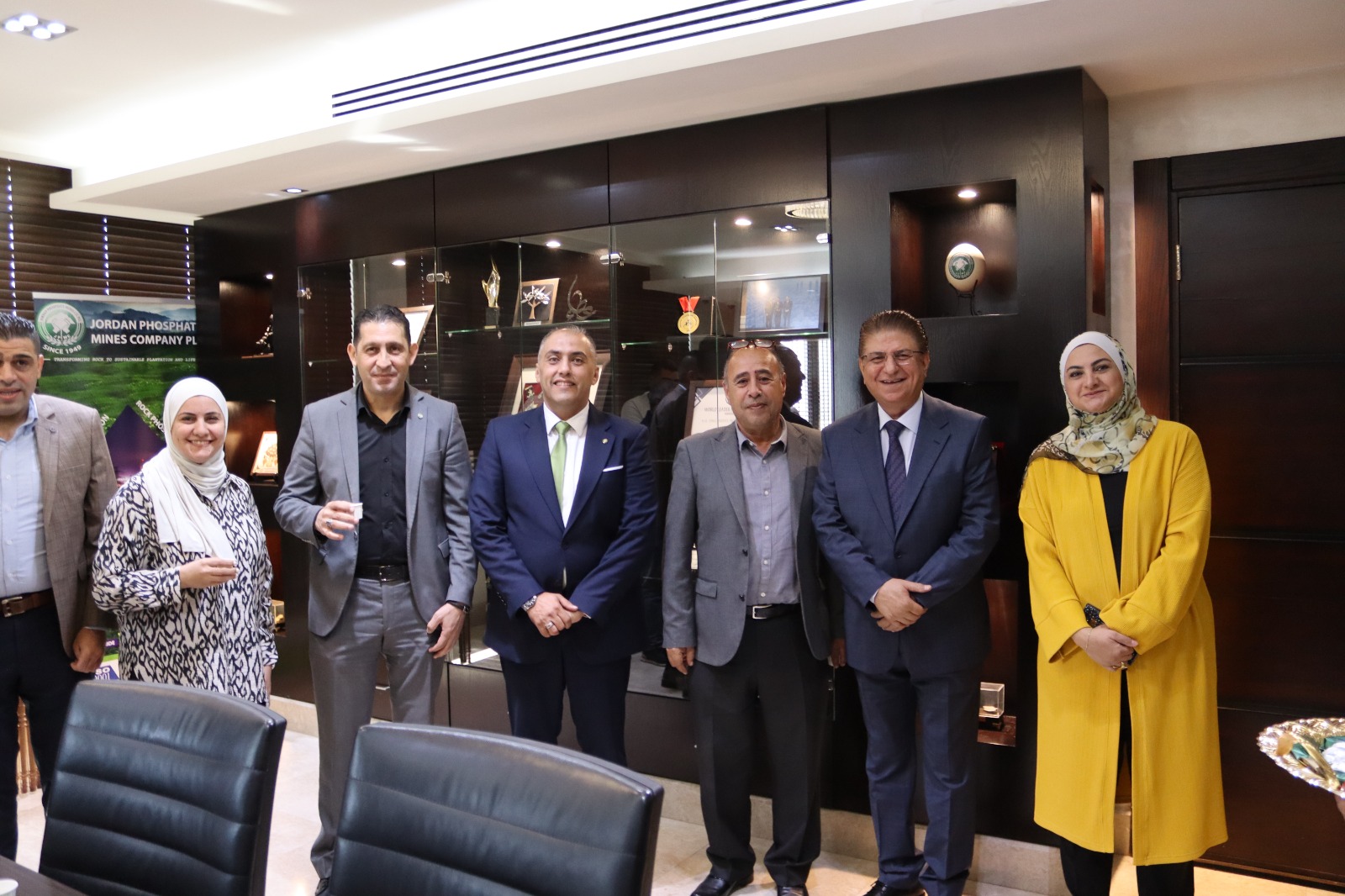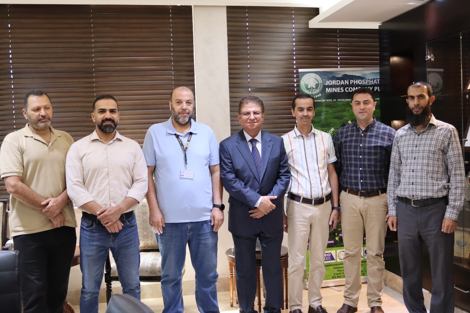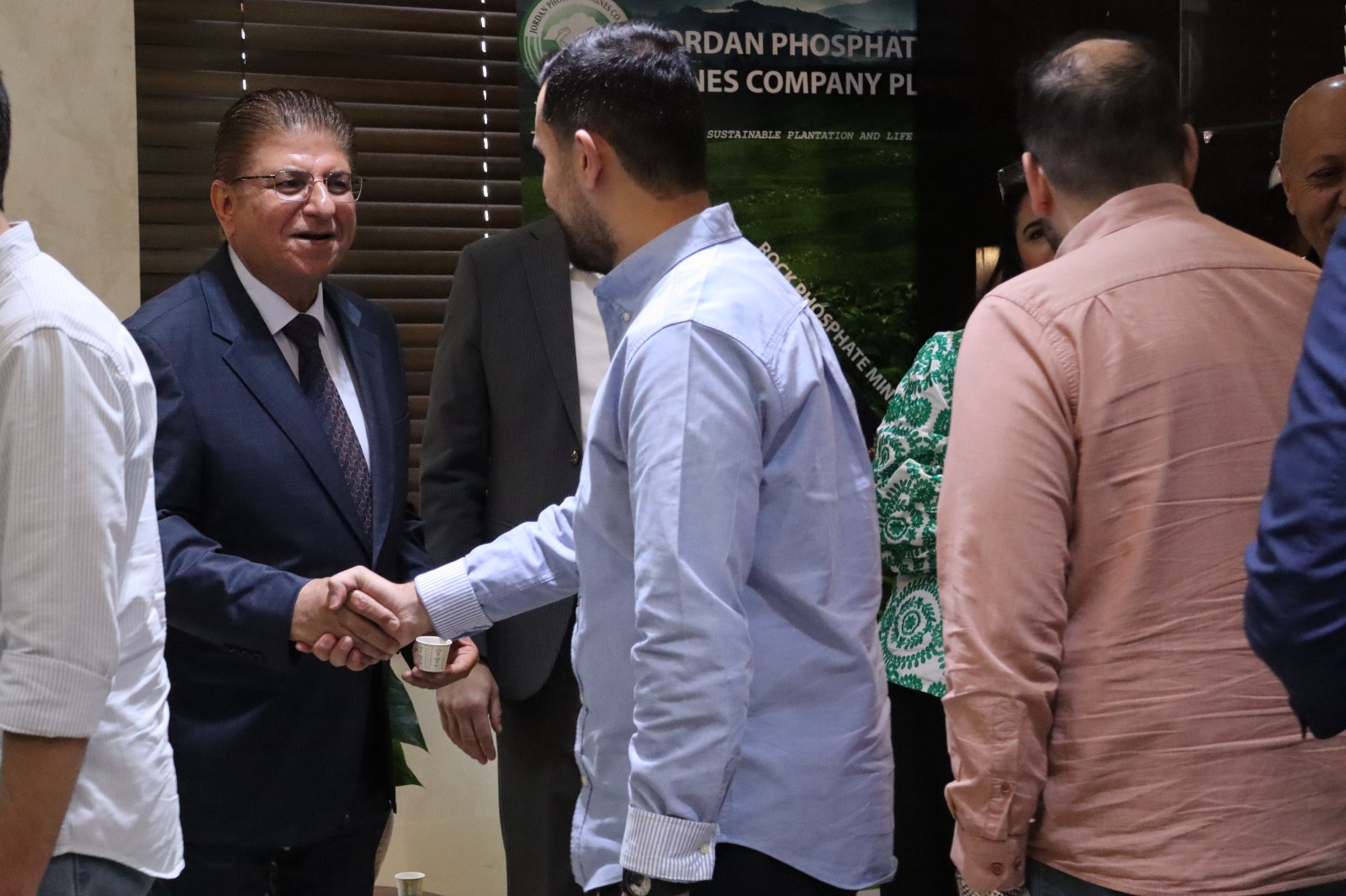 The CEO of the Jordan Phosphate Mines Company, Engineer Abdul Wahab Al-Ruwad, receives congratulations from the company's family on his election as Chairman of the Board of Directors of the Arab Fertilizer Association for the next term.
