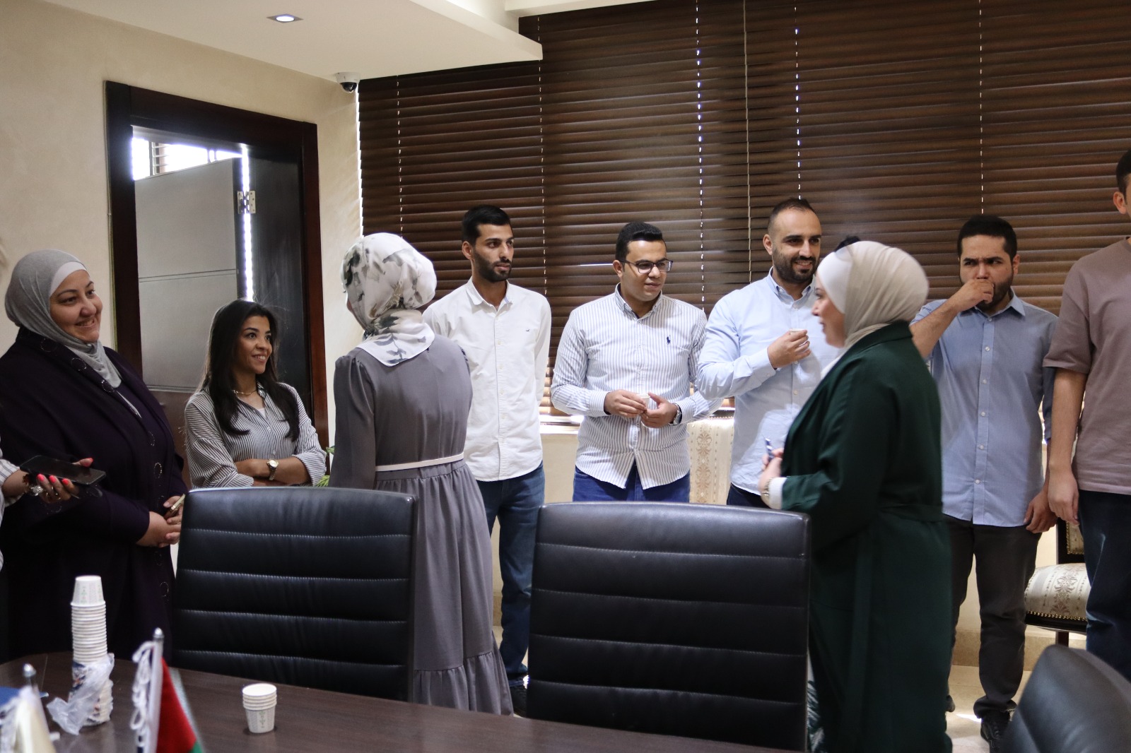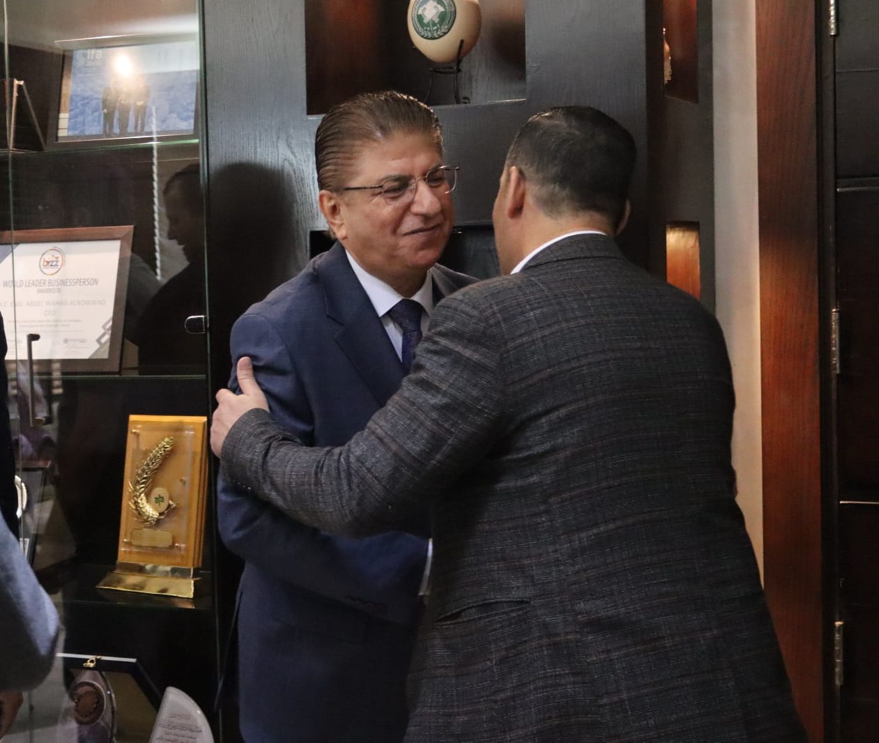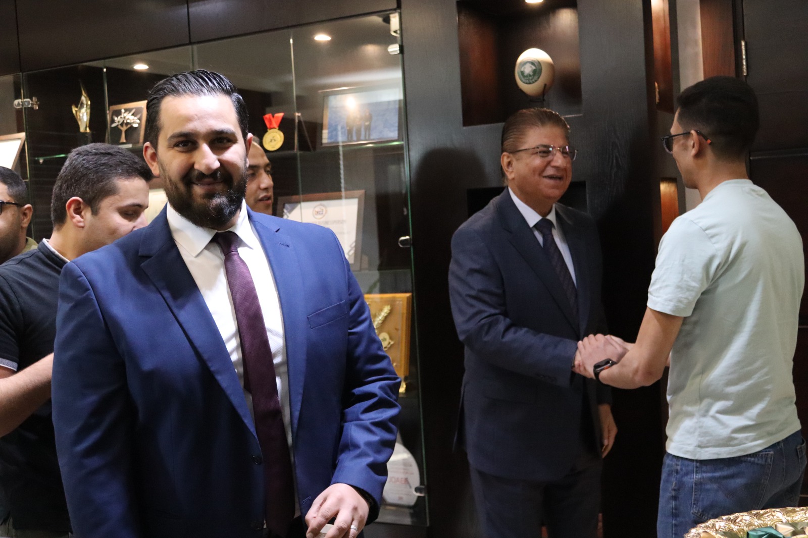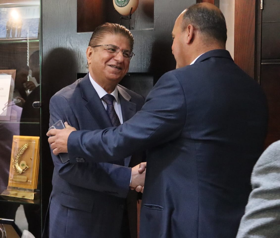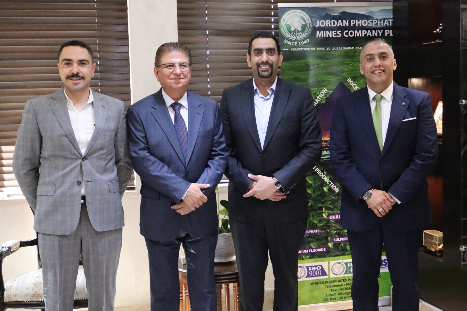 The CEO of the Jordan Phosphate Mines Company, Engineer Abdul Wahab Al-Ruwad, receives congratulations from the company's family on his election as Chairman of the Board of Directors of the Arab Fertilizer Association for the next term.